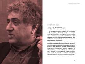 “Trata-se de uma colecção de entrevistas feitas pelo arquitecto Nuno Lacerda Lopes. São conversas entre arquitectos da Escola do Porto onde se procura compreender o processo de construção de um ideal de arquitectura, de profissão, de sociedade e de escola, tendo por base uma reflexão pessoal e aberta e até esclarecer as inquietações teóricas e práticas bem como as circunstâncias que fundamentam a arquitectura portuguesa dos dias de hoje.”